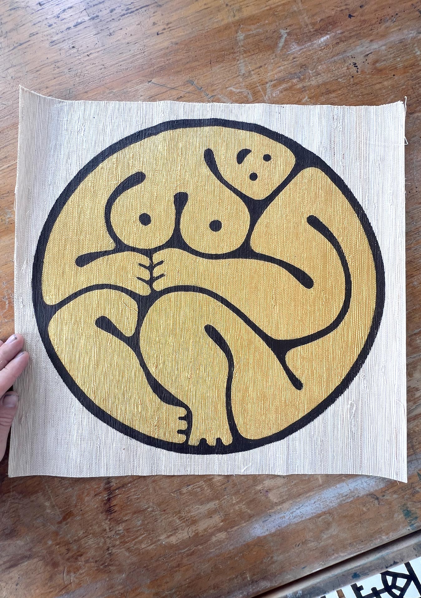 Acrylic and liquid metal onn vintage wallpaper